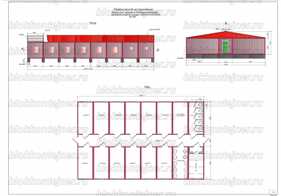 Общежитие на 50 человек, одноэтажное из 16 БК